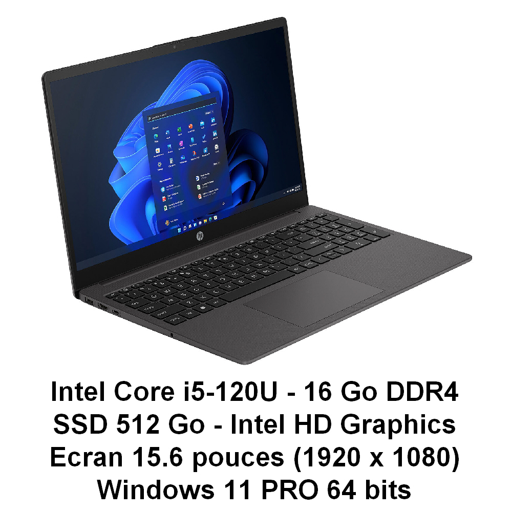 Intel Core i5-120U16 Go RAM DDR4SSD 512 GoIntel HD GraphicsHDMI - 2 x USB 3.0 - 1 x USB CWifi - BluetoothEcran 15.6 pouces FHD (1920 x 1080)Windows 11 Pro 64 Bits