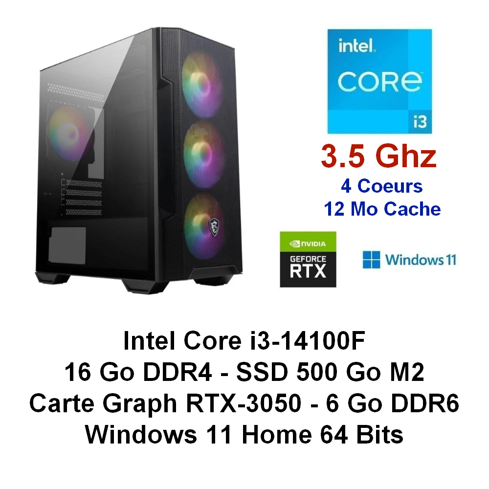 CPU: Intel Core i3-14100F (3.4 Ghz) 4 Coeurs 12 Mo Cache